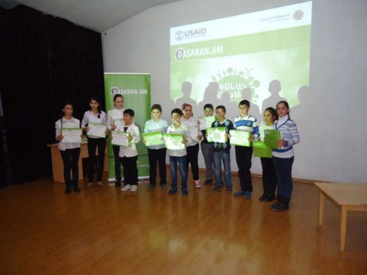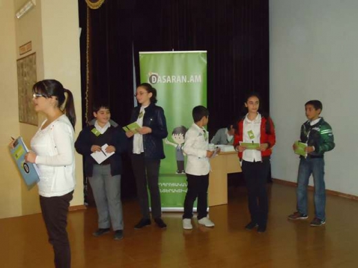 Հիշեցնենք, որ «Նոր սերնդի դպրոց» հասարակական կազմակերպությունը և «Dasaran.am» կրթական ծրագիրը, Քաունթերփարթ ինթերնեշնլի և ԱՄՆ ՄԶԳ-ի ֆինանսավորվմամբ, ս.թ. հոկտեմբերի սկզբին հանդես եկան հերթական հետաքրքիր և նորարարական նախաձեռնությամբ՝ աշակերտներին ներկայացնելով «Կանաչ աշխարհ» ինտելեկտուալ խաղը: