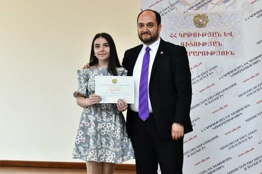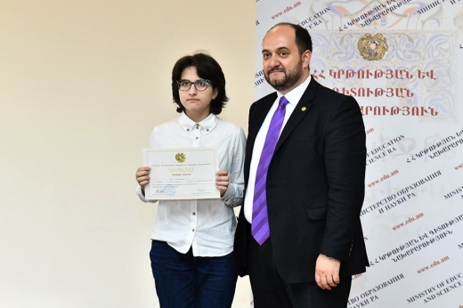 ՀՀ կրթության և գիտության նախարարությունում այսօր տեղի է ունեցել դպրոցականների առարկայական օլիմպիադաների առաջին կարգի դիպլոմների հանձնման արարողությունը: Աշակերտներին շնորհավորել և դիպլոմները հանձնել է ՀՀ կրթության և գիտության նախարար Արայիկ Հարությունյանը: «Իրականում ինձ համար մեծ պատիվ է տարբեր առարկաներից լավագույն ցուցանիշներ ունեցող աշակերտներին պարգևներ հանձնել, որովհետև այսուհետ և ընդմիշտ Հայաստանի Հանրապետությունում առաջնային են լինելու կրթությունը և գիտելիքը, հարգանք ու պատիվ են ունենալու բոլոր նրանք, ովքեր այս ուղղությամբ ունեն հաջողություն: Վստահ եմ, որ առաջիկայում լավագույն բուհեր եք ընդունվելու և էլ ավելի մեծ հաջողություններ ունենալու»,-նշել է նախարարը՝ հավելելով, որ անցած տարվանից Հայաստանի համար կարևոր է ունենալ բարձր տեխնոլոգիական տնտեսություն, և կառավարության ծրագրի այս տողը մեր լավագույն աշակերտներն են ապահովելու ու մեծ զարկ տալու տնտեսության զարգացմանը, որովհետև գնահատում են գիտելիքը, պատրաստ են սովորել, կրթվել և վերափոխվել: Արայիկ Հարությունյանը նաև շնորհավորել է աշակերտների ծնողներին, նրանց ուսուցիչներին, կրթության բոլոր կազմակերպիչներին, որոնք, ըստ նախարարի, իրենց ներդրումն են ունեցել և ապահովել են պայմաններ, որպեսզի աշակերտները պատշաճ մակարդակով ստանան լավագույն գիտելիքները: Նշենք նաև, որ 2018-2019 ուսումնական տարվա դպրոցականների առարկայական օլիմպիադաներին մասնակցել է շուրջ 57000 սովորող: Դպրոցականների օլիմպադաները կազմակերպվում են 16 առարկայից, որոնցից մաթեմատիկա, ֆիզիկա, քիմիա, կենսաբանություն, աստղագիտություն, ինֆորմատիկա և աշխարհագրություն առարկաներից մեր աշակերտները մասնակցում են միջազգային օլիմպիադաներին: Միջազգային օլիմպիադաների թիմերը կազմվում են հանրապետական փուլի հաղթողներից: 16 առարկայից հանրապետական փուլին մասնակցել է 1568 աշակերտ․ ըստ որում՝ առաջին կարգի դիպլոմի է արժանացել 72 աշակերտ, երկրորդ կարգի դիպլոմի՝ 114 և երրորդ կարգի՝ 201 աշակերտ: Աղբյուրը՝ Edu.am