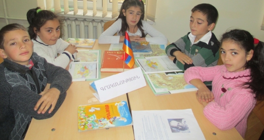 Դասի սկզբում երեխաները տեղեկություններ հաղորդեցին Հայաստանի մասին, մեկնաբանեցին մեր ազգային արժեքները` դրոշ, զինանշան, երգեցին ՀՀ հիմնը: