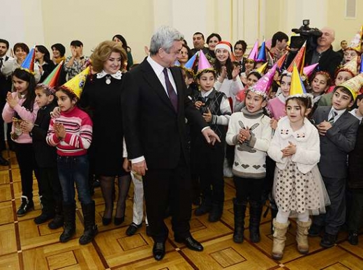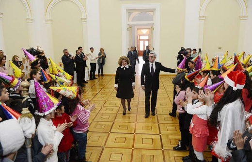Դեկտեմբերի 23-ին տոն էր ՀՀ Նախագահի նստավայրում: Նախագահ Սերժ Սարգսյանը և տիկին Ռիտա Սարգսյանը Ամանորի և Սուրբ Ծննդյան տոների կապակցությամբ հյուրընկալել էին սահմանամերձ բազմաթիվ գյուղերի՝ Գեղարքունիքի մարզի Ճամբարակ, Վահան, Վայոց Ձորի մարզի Խնձորուտ, Բարձրունի, Խաչիկ, Սերս, Արարատի մարզի՝ Երասխ, Տավուշի մարզի Բարեկամավան, Բերդավան, Դովեղ, Բաղանիս գյուղերի՝ թվով 200 երեխաների: Փոքրիկ հյուրերի ներկայությամբ հանդիսավորությամբ վառվել են նստավայրի տոնածառի լույսերը, և մեկնարկել է տոնական միջոցառումը: