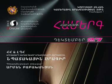 Ս. թ.դեկտեմբերի 27-ին «Հարմոնիում» երաժշտական զարգացման կենտրոնը Երևանի Կոմիտասի անվան կամերային երաժշտության տանը կիրականացնի հաշվետու համերգ` Երևանի, ԼՂՀ-ի և ՀՀ մարզերի բացառիկ ունակություններով օժտված տասնհինգ պատանի երաժիշտ-կատարողների մասնակցությամբ: