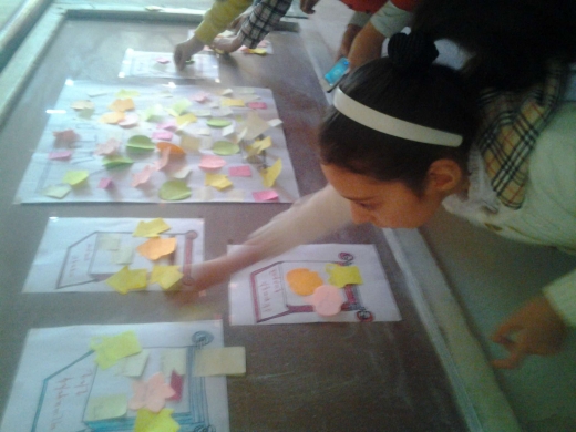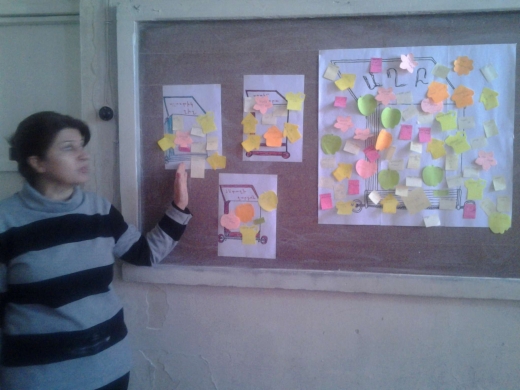Նրանք դիտեցին տեսաֆիլմեր «Աղբը որպես բնապահպանական հիմնախնդիր», «Աղբի տեսակները» թեմաներով: Ակտիվ քննարկումներից հետո անցան գործնական աշխատանքին. աշակերտները տարբեր գույների (յուրաքանչյուրից 2-ական) կպչուն թղթերի վրա գրեցին նույն աղբի անունը և դրանցից մեկը ամրացրին գրատախտակի պաստառին նկարված աղբամանին: Ստացվեց տարբեր աղբերի անուններով գույնզգույն թղթերով լցված մի մեծ աղբաման: Երկրորդ օրինակը փակցրին համապատասխան անունը կրող փոքր աղբարկղին (թուղթ, պլաստիկ շիշ, ապակե տարա, սննդի մնացորդ, մետաղի ջարդոն):