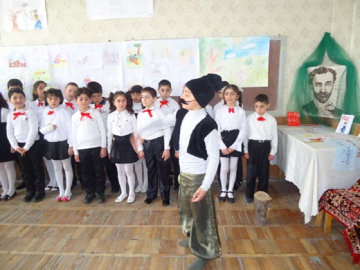 Պատից երեխաներին էին ժպտում Թումանյանի բարի աչքերը: Ցուցադրված էին աշակերտների կողմից կատարված Թումանյանի հեքիաթների նկարազարդումները: