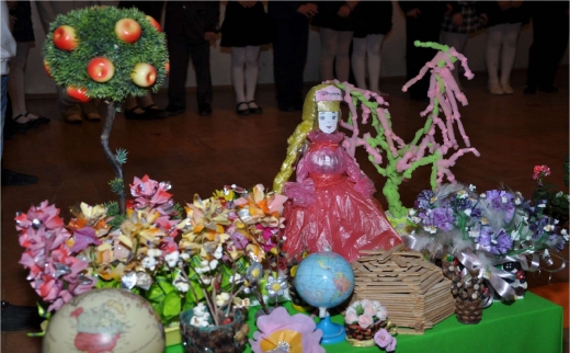 Դպրոցի դահլիճը կահավորված էր բնական և արհեստական նյութերի թափոններից պատրաստված հետաքրքիր իրերով, առարկաներով:
