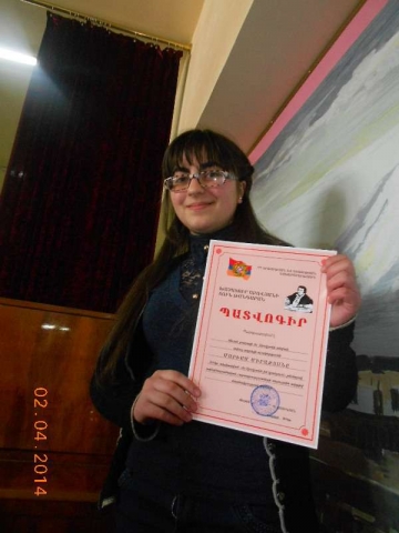 Սևանի Խ. Աբովյանի անվան ավագ դպրոցի հումանիտար հոսքի X դասարանի աշակերտներից Մարիամ Միրաքյանի շարադրությունը արժանացավ առաջին մրցանակի, իսկ Տաթևիկ Ներսիսյանի աշխատանքը արժանացավ խրախուսանքի: Նախարարի շնորհակալագրով  պարգևատրվեցին տնօրեն Լ. Մկրտչյանը և դասղեկ Է. Իսրայելյանը: