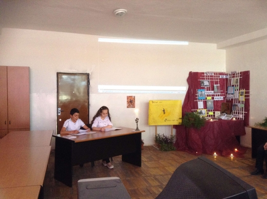 Աշակերտների նախապես կահավորած անկյունից ժպտում էր լույսերի մեջ ողողված բանաստեղծը ու արձագանքում նրանց խոսքին. «Աշխարհին ուղղված մի բացիկ եմ ես…»: