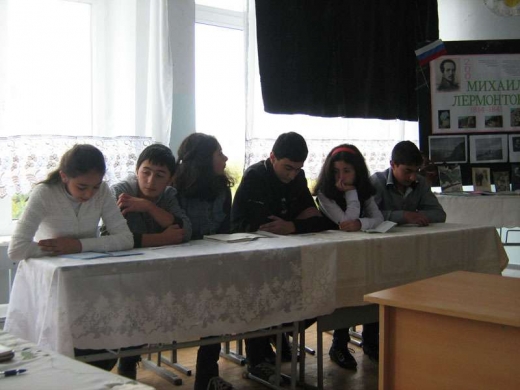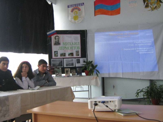 Դասարանը ձևավորված էր ռուս գրողի դիմանկարով, ստեղծված վահանակով, բանաստեղծի ստեղծագործությունների հավաքածուներով: Դասն սկսվեց Լերմոնտովին նվիրված Վ. Բելինսկու խոսքերով: