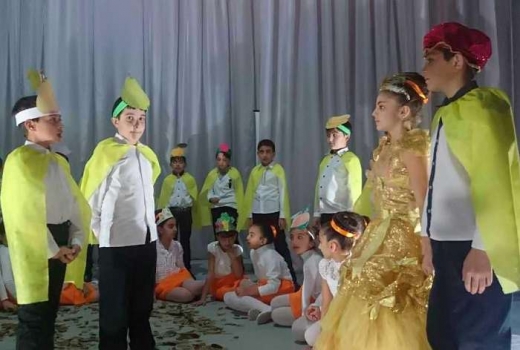 Ներկայացվեց փոքրիկ բեմադրություն ՝ աշնանային գույներով ու երանգներով: Երեխաների պատկերացումները բազմազան էին, երևակայությունները՝ անսահման: