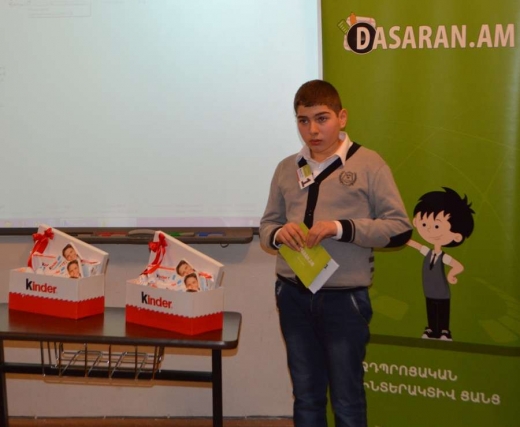 «Dasaran.am»-ը և իր գործընկեր «Ferrero» ընկերությունը բոլոր աշակերտներին կոչ են անում շարունակել իրենց իմացության և գիտելիքների ընդլայնումն ու կատարելագործումը, քանի որ առջևում դեռ անակնկալ այցեր են լինելու հանրակրթական մյուս դպրոցներ: