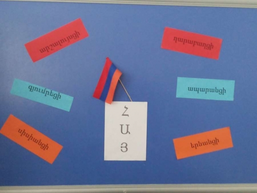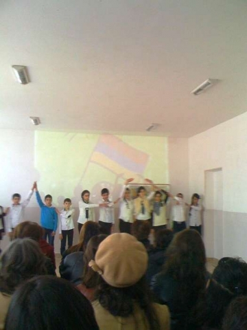Վերջինիս հնչողության ներքո աշակերտները հանդիսատեսին բաժանեցին հայի ինքնությունն ու պետականությունը բնորոշող եռագույն դրոշներ: Միջոցառումն ավարտվեց դպրոցի բակում, որտեղ երկինք բաց թողնվեց աղավնի` որպես խաղաղության խորհրդանիշ: