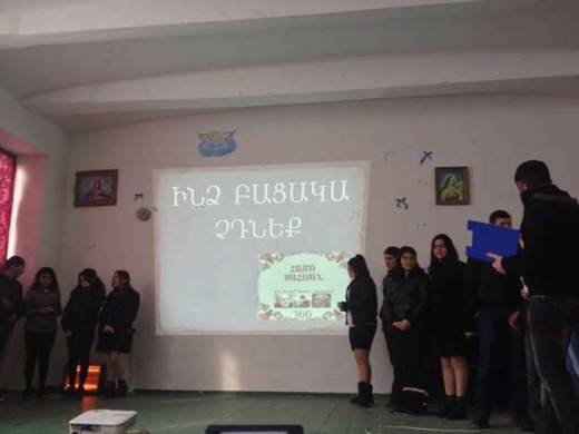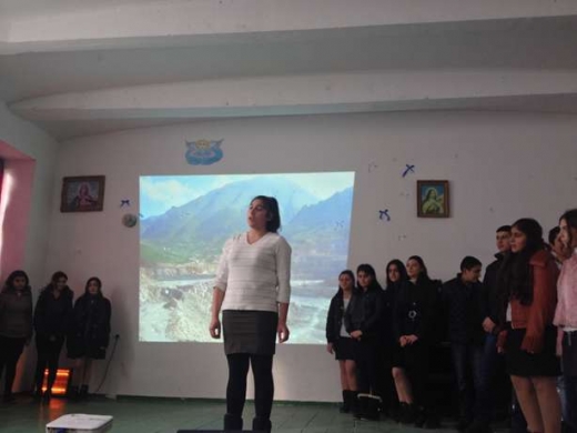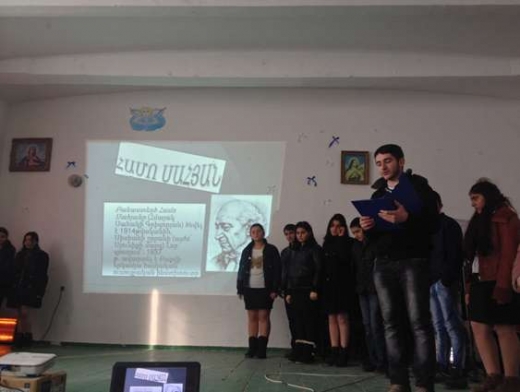Բեմը լուսավոր է: Սյունաց աշխարհի շքեղ բնապատկերները և Սահյանի խոհուն կերպարանքը ներդաշնակվում են ճեփ–ճերմակից շողացող աշակերտներին, աղմկոտ դահլիճին:
