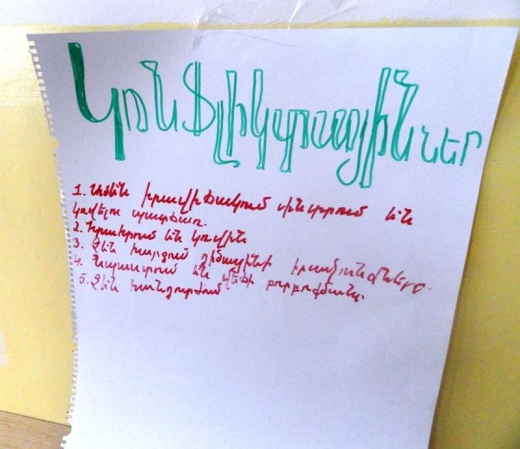 Աշակերտները հստակորեն որոշակիացրեցին իրենց դիրքորոշումները որպես կոնֆլիկտայիններ, խաղաղասերներ և խաղաղապահներ, ովքեր առաջադրված կոնֆլիկտային իրադրությունում փորձեցին պահպանել իրենց համոզմունքներ: Ընտրված երգի լավատեսական խոսքերը` «թե արդար է քո պայքարը, հավատա քո ուժերին», դեռահասներին կուղեկցեն առաջիկա օրերին: