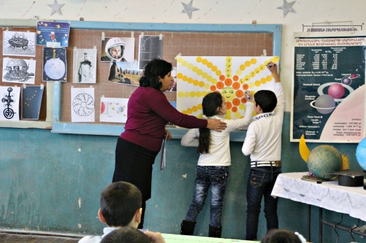 Երևանի Գր. Բաղյանի անվան թիվ 141 հիմնական դպրոցի 3-րդ «ա» դասարանում անցկացված հերթական դասը նվիրված էր Արեգակնակային համակարգին: Դասասենյակը գեղեցիկ կահավորված էր: Գրատախտակի վերևում ներկայացված էր Արեգակնային համակարգի փոքրացված մոդելը: Աշակերտները պատրաստել էին մոլորակներ, հրթիռներ, աստղեր, բազմաթիվ շարժանկարներ: Դասն սկսվեց Ռուբեն Հախվերդյանի «Գիշերվա աստղազարդ երկնքում» երգի հնչյունների ներքո: