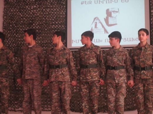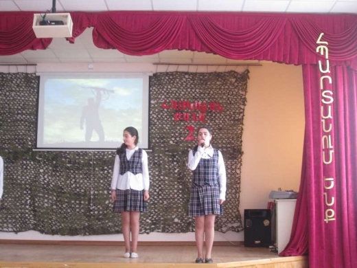 Հայրենիքի պաշտպանությունն սկսվում է այստեղից՝ դպրոցից, որի նպատակն է դաստիարակել ապագայի համար արժանի սերունդ: Հունվարի 28-ին նույն դպրոց այցելեցին ՊԲ մի շարք սպաներ: Նրանք դպրոցի ընդարձակ դահլիճում անցկացրեցին արիության դաս: Սպաները հանդես եկան, ելույթներով, պատասխանեցին աշակերտների հարցերին: Վերջում աշակերտները հանդես եկան երգերով ու արտասանություններով: