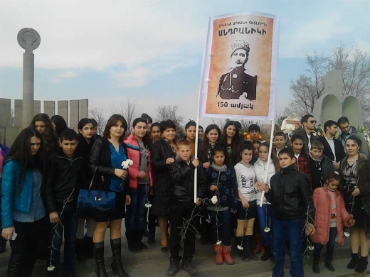 Ապա այցելեցին Եռաբլուր պանթեոն, ծաղիկներ դրեցին հերոսի շիրիմին: Ներկաները երգեցին հերոսին նվիրված հայրենասիրական երգեր, պարեցին հայկական քոչարին: