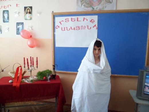 Սպիտակի դպրոցի 5 «ա» դասարանում Հայոց եկեղեցու պատմություն առարկայի ուսուցչուհի Աննա Թովմասյանը անցկացրեց բաց դաս՝ «Սուրբ հարություն» թեմայով: Դաս - միջոցառումն սկսվեց տերունական աղոթքով, որից հետո աշակերտները ներկայացրեցին Քրիստոսի խաչելիության գաղափարը, մեկնաբանելով Քրիստոսի խաչելիության առանցքը, նրա թաղումը և մեռելներից հարությունը: