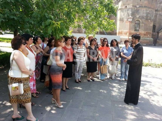 Անձնակազմին դիմավորել է Քրիստոնեական Դաստիարակության կենտրոնի ղեկավար, Գերաշնորհ տեր Վարդան Եպիսկոպոս Նավասարդյանը, ով այցի ընթացքում դասախոսություն է կարդացել մանկավարժների համար: