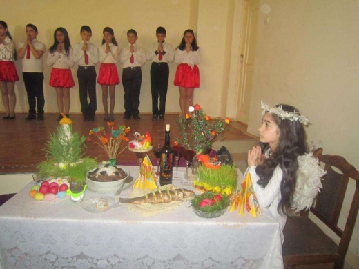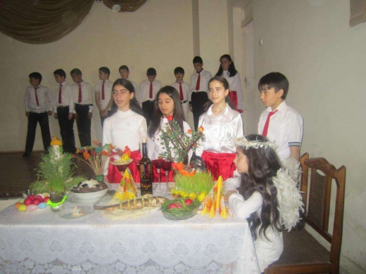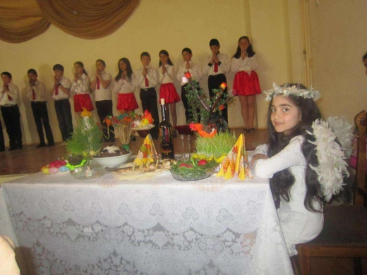 Երեխաները պատմեցին, թե որտեղի՞ց է տոնն առաջացել, ինչպե՞ս և ի՞նչ շուքով են նշել տոնը մեր նախնիները, թե ո՞րն է տոնի խորհուրդը: Երգեցին քրիստոնեական երգեր,  դիտեցին Հիսուս Քրիստոսի Հրաշափառ Հարությանը նվիրված ֆիլմից հատված, մեջբերումներ կատարեցին նաև Աստվածաշնչից: Միջոցառմանը ներկա էր նաև Շիրակի թեմի առաջնորդ Միքայել եպիսկոպոս Աջապահյանն, ինչպես նաև «Փյունիկ» հասարակական կազմակերպության Գյումրու մասնաճյուղի ղեկավար Արմենուհի Նիկողոսյանը: Վերջիններս շնորհակալություն հայտնեցին միջոցառման կազմակերպիչ Հայաստան Կարապետյանին և  դպրոցի տնօրինությանը: