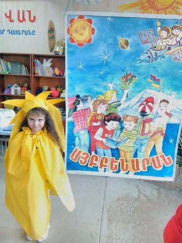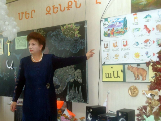 Առաջին զանգի լոււսաղողանջ ելևէջներից շատ քիչ ժամանակ է անցել, երբ վեցամյա փոքրիկներին դպրոցում դիմավորեցին կերպավորված հերոսները` սիրելի << Այբբենարանը >> և մյուս դասագրքերը, որոնք հակիրճ ներկայացրին իրենց անելիքները:Իսկ այսօր բոլորը նմանվել էին շողացող փոքրիկ արևիկների և անհամբերությամբ էին սպասում այբուբենի արքայական Ա տառի ժամանմանը: Նրանց եռանդուն վաստակաշատ ուսուցչուհին` Ս. Քոչինյանը, դասարանը կահավորել էր առանձնահատուկ ջանասիրությամբ և բարձր ճաշակով ընտրված դիդակտիկ նյութերով, որոնք երեխաներին մատուցվեցին մանկավարժական հմուտ մեթոդներով:Կարծես հսկա արևից ծնվեց փոքիկ Մարիայի արևային պարը , որից արթնացան Աքլորիկը,Արևածաղիկը, Անտառային դպրոցի գազանիկներն ու թռչունները /ա տառով սկսվող / և դասարանը լցվեց բնության ձայներով: Բժիշկ Այբոլիտն էլ որոշել էր դասը վարել հայերենով:Բոլորին զգաստացրեց և հաճելի զարմանք հաղորդվեց, երբ հնչեց Մեսրոպ Մաշտոցի լույս պատգամը առնական ձայնով և Այբբենարանի միջից հայտնվեց ոսկեղենիկ Ա տառը:Երեխաները ասմունքով,հանելուկներով ,երգ ու պարով դիմավորեցին նրան և աշխատեցին նկարների գծապատկերներում գտնել ու գունավորել Ա տառը:Իսկ հրաշագեղ Անիի` Աշուն տատիկի հյուրընկալ սեղանը շլացրեց աշնանային մրգերով և Ա տառի դասանյութով ձևավորված տորթով:Վերջում բոլոր << գազանիկներն ու թռչունները>> ասում-խոսում էին հայերենով, հնչեց<<Հայերեն>>երգը, իսկ բժիշկ Այբոլիտը նրանց նվիրեց իր խորհուրդների չափածո պատգամը : Դպրոցի տնօրեն Ս. Մացակյանի գնահատմամբ մարզում և հանրապետությունում լավագույն ճանաչված, իր գործին անմնացորդ նվիրված հմուտ ուսուցչուհու` Ս. Քոչինյանի հերթական գեղեցիկ դասը ևս մեկ անգամ հավաստեց, որ << Երջանիկ իմաստությամբ է ապրում նա, ով սովորեցնելու մեջ սիրում է անվերջ սովորել... >>: Այդպես է մտածում և ստեղծագործում Ս. Քոչինյանը: Դրվատանքի և գնահատանքի բազում խոսքեր հնչեցին փոխտնօրեններ` Կ. Սարիբեկյանի, Գ. Դարչինյանի և ծնողական խորհրդի կողմից: