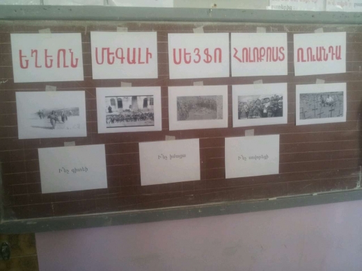 Հայոց ցեղասպանության 100-րդ տարելիցի շրջանակում աշակերտները կրկին անդրադարձան Հայոց ցեղասպանությանը՝ որպես 20-րդ դարի առաջին սեղասպանության, ինչպես նաև հույների, ասորիների, հրեաների և Ռուանդայի ցեղասպանություններին, նրանց ընդհանրություններին և կանխարգելման միջոցներին: