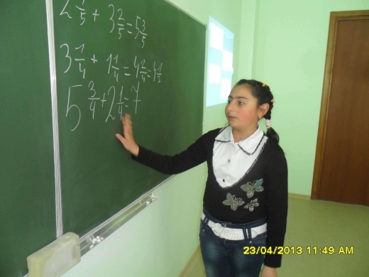 Աշակերտները ներկայացրին, թե ինչպես են կատարվում գործողություններ կոտորակային թվերի հետ, լուծեցին խնդիրներ և հավասարումներ, կիրառեցին Գաուսի մեթոդը:
