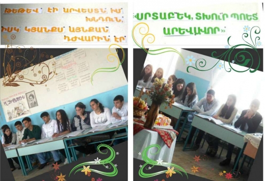 Նոյեմբերի 30-ին Արարատի մարզի Վերին Արտաշատի միջնակարգ դպրոցի XI ա դասարանում ( ուսուցիչ Ա. Պողոսյան) կազմակերպվել էր դաս-միջոցառում՝ նվիրված մեծանուն հայ քնարերգու Վահան Տերյանի ծննդյան 130-ամյակին: Դասասենյակը ձևավորված էր աշնան մարմրող, բայց գունեղ երանգներով, աշնան վերջին օրվա ներշնչանքով ու կախարդանքով: Բանաստեղծի «կենդանի» ներկայությունն էին ապահովում պատերին փակցված՝ բանաստեղծի, նրա ընտանիքի, մտերիմների լուսանկարները, Տերյանի «Բանաստեղծություններ»-ի I հրատարակության շապիկին համահունչ ձևավորված պատի թերթը: Շատ տպավորիչ էր բանաստեղծական տրամադրություն ստեղծող սեղանի ձևավորումը՝ և' գինու գավը, և' աշնան «տերևներով» զարդարված տորթը, և' հայկական մրգերով լի զամբյուղը, և' աշնանային «հողմավար» ծաղիկները: Միջոցառումն սկսվեց գեղեցիկ վալսով, որը կատարեցին Անուշը և Գոռը՝ «Կարուսել» երգի ուղեկցությամբ: Մեր մեծանուն վարպետների կատարմամբ հնչեցին երգեր՝ գրված Տերյանի խոսքերով, աղջիկների խումբը երգեց «Տարիներ»-ը՝ արժանանալով բարձր գնահատականի, իսկ Ռազմիկի ակորդեոնի ուրախ նոտաները «ճեղքեցին» թախծի ու տխրության մթնոլորտը: Տերյանական ոսկեշղթա նվագները հնչեցին ողջ միջոցառումն ընթացքում՝ ունկնդիրներին գերելով պոետական խոսքի անխառն գեղեցկությամբ: Դասն ավարտվեց «Երկիր Նաիրի» շարքի «Մի խառնեք...» բանաստեղծությամբ՝ ուսուցչուհու մատուցմամբ: Համակարգչային ձևավորումը կատարել էր Գ. Գալստյանը՝ դասարանի մի խումբ աշակերտների մասնակցությամբ: