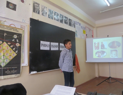 2016 թվականի մարտի 23-ին «Գյումրու թիվ 32 հիմնական դպրոց» ՊՈԱԿ-ում տեղի ունեցավ բաց-դաս IX դասարանում, կենսաբանություն առարկայից. ուսուցչուհի Լ.Մանուկյան: Դասը նվիրված էր Դաունի համախտանիշով հիվանդ մարդկանց միջազգային օրվան: Դասը հագեցված էր դիդակտիկ պարագաներով` պաստառներով, պլակատներով, աղյուսյակներով, և թեմային վերաբերվող սլայդներով, որոնք ցուցադրվեց պրոյեկտրով: Աշխարհում ամեն տարի 3000-5000 երեխա է ծնվում Դաունի համախտանիշով: ՄԱԿ-ի նախաձեռնությամբ 2012թ. մարտի 21-ը նշվում է, որպես Դաունի հիվանդության միջազգային օր: Դասի նպատակն էր այդ հիվանդությամբ տառապող մարդկանց խնդիրները բարձրաձայնելը և հասարակության շրջաններում նրանց դերը կարևորելը: Ցավոք , հասարակության մեջ դեռևս պահպանվում է այդ հիվանդության խարանը և հիվանդ երեխաների նկատմամբ խտրական վերաբերմունքը: Սակայն Դաունի համախտանիշով անձինք չնայած ունեն որոշակի մտավոր խնդիրներ, բայց մյուս մարդկանց նման ունեն զգացմունքներ, հույզեր: Միայն ճիշտ և ժամանակին կազմակերպված համապատասխան վերականգնողական բուժումը և շրջապատի վերաբերմունքի փոփոխությունը կարող են մեծապես նպաստել հասարակության մեջ հիվանդների լիարժեք ինտեգրմանը: Բաց- դասով աշակերտները ներկայացնում են ոչ միայն Դաունի համախտանիշի հայտնաբերման պատմությունը, առաջացման նախապայմանները, Դաունի համախտանիշի տեսակները, այդ հիվանդության առանձնահատկությունները, այլ նաև գենետիկա գիտության սկզբնավորումը՝Գ. Մենդելի տված օրինաչափությունները, մարդու գենոմի առանձնահատկությունները և միջավայրի մուտածին գործոնների ազդեցությունը մարդու վրա, դրանց առաջացրած հիվանդությունները: