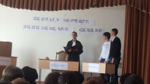 Այսօր մենք գումարում ենք դատական մի նիստ՝ հարազատ հոր և մոր սպանությունների մեջ մեղադրվող իշխանազն Սամվել Մամիկոնյանի արարքի առնչությամբ: Քրիստոսի ծննդյան 368 թվականին՝ հայոց հրոտից ամսվա տասնիննին, Իշխանաց կղզում սպանվել է նախարար Վահան Մամիկոնյանը, իսկ օրեր անց հայրենի Ողական ամրոցում նույն սրով սպանվել է նրա կինը: Երկու սպանություններն էլ կատարել է նրանց որդին՝ Սամվելը: Սամվելը մի քստմնելի հայրասպան չէր, այլ գաղափարական մարտիկ: Սպանությունը եղել է չկանխամտածված և չի ունեցել այլ հանցակիցներ: Սամվելի հայրը պարսից արքայից ստացել էր նրա կողմից մորթազերծ արված իր սպարապետ եղբոր պալտոնը՝ փոխարենը խոստանալով օժանդակել նրան՝ վերացնելու հայկական կրոնը, լեզուն, սովորույթները, այսինքն՝ վերացնելու հայկական ինքնությունները: Սամվել Վահանի Մամիկոնյանը ազգային նկարագիր ունեցող հայրենասեր գործիչ է, ով պետական մտածողությունը գերադասել է իր արյունակցական կապից: Առ այսօր մնացել է հայրենասիրության բարձրագույն տիպար, սովորեցնում է, թե ինչպես պետք է սիրել հայրենիքը և պաշտպանել պետությունը: Միջոցառումը կազմակերպել էին Եղվարդի Հ.Թադևոսյանի անվան N2 հիմն. դպրոցի VIIIբ դասարանի աշակերտները և դասղեկ Բ.Առաքելյանը: