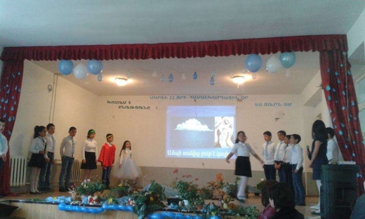 Մարտի 22-ին, որը համարվում է Ջրի համաշխարհային օրը, Արարատի մարզի Վերին Արտաշատի միջնակարգ դպրոցում տեղի ունեցավ գեղեցիկ միջոցառում, որը կազմակերպել էր դպրոցի կենսաբանության ուսուցչուհի Գ. Խաչատրյանը՝ Vա դասարանի աշակերտների մասնակցությամբ: Միջոցառումը կրում էր հետևյալ խորագիրը. «Խոսում է բնությունը. ես ջուրն եմ»: Դահլիճը զարդարված էր թեմային համահունչ, կարծես բնության մի գողտրիկ անկյուն լիներ՝ հատկապես գեղեցիկ էր պատրաստված գետը՝ շրջապատված ծաղիկներով, եղնիկներով: Միջոցառումը սկսվեց ջրին տված ողջույնի «Բարև» երգով: Այնուհետև Աստղիկ աստվածուհին և Վահագնը ներկայացրեցին, որ իրենց սիրուց ծնված անձրևը բարեբեր էր երկրի համար: Միջոցառման ընթացքում ներկայացվեց ջրի՝ որպես պարզ անօրգանական նյութի քիմիական կառուցվածքը, հատկությունները, նշանակությունը՝ բնության մեջ և մարդու կյանքում, նշվեց, որ այն ուղեկցում է մեզ յուրաքանչյուր ակնթարթում: Ներկայացվեց ողջ ջրոլորտը՝ իր բաղադրիչներով, նրա աղտոտումը, պահպանությունը: Բերվեցին մի շարք հետաքրքիր փաստեր: Նշվեց, որ օրը սահմանվել է 1993 թվականին ՄԱԿ-ի գլխավոր վեհաժողովի ժամանակ: Միջոցառման ողջ ընթացքը ուղեկցվում էր համապատասխան ձևավորված սլայդներով, երգերով, բանաստեղծություններով: Այն ավարտվեց հետևյալ իմաստալից խոսքով. Ջու՛ր, Դու ոչ միայն կյանքի համար անհրաժեշտ նյութ ես, Դու աստվածային ես, Դու ամենամեծ հարստությունն ես կյանքի… Միջոցառման համակարգչային ձևավորումը իրականացրել էր դպրոցի համակարգչային օպերատոր՝ Ս. Թամազյանը: