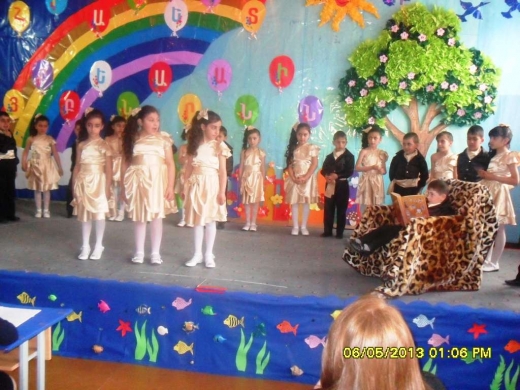 Փոքրիկները երկար սպասեցնել չտվեցին, շուտով նրանք մանկական ուրախ մեղեդու հնչյունների ներքո արդեն բեմում են: Ինքնավստահ ու մանկական զիլ ձայները պատմում ու պատմում են, գովերգում ու իրենց հայացքն են արտահայտում աննկուն ու քաջ, հազարամյա ուղիով քայլած անկրկնելի ու թանկ հայ գրերի, չքնաղ ու մեղեդային մեր հայրենիի, և սուրբ ու մայրիկի պես անուշ մեր հայրենիքի՝ Հայաստանի մասին: Չեն շփոթվում, չեն մոռանում նրանց ուղին. չէ՞ որ այսօր այս դասը վարում են հենց իրենք՝ այս փոքրիկները: Եվ հենց այստեղ՝ բեմում նրանք մեծացան ու մեծացան: Երգը, պարը, խոսքը, մեղեդին միահյուսվելով էլ ավելի բովանդակալից դարձրեցին հայեցի դասը: