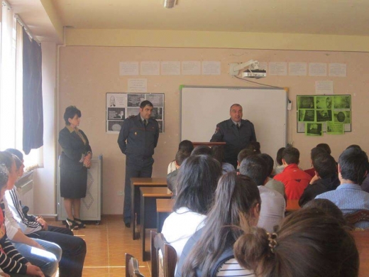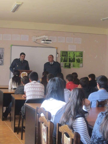 Անչափահասների քաղաքացիական դաստիարակության իրավական գիտելիքների իմացության բարձրացման, ինչպես նաև նրանց կողմից կատարվող իրավախախտումները հնարավորինս կանխելու նպատակով ս/թ մայիսի 6-ին դպրոց այցելեցին ոստիկանության Տարոնի բաժնի ՔՀԲ ավագ օպեր-լիազոր, կապիտան Միքայել Սարգսյանը և ոստիկանության Տարոնի բաժնի անչափահասների գործով բաժանմունքի դպրոցական ավագ տեսուչ, ոստիկանության մայոր Գարիկ Խաչատրյանը: Հանդիպման ընթացքում խոսվեց անչափահասների կողմից կատարվող իրավախախտումների առանձնահատկությունների և դրանց կանխարգելման, ռազմա-հայրենասիրական դաստիարակության, անչափահասների շրջանում թմրամոլության կանխարգելման, անչափահասների շրջանում աղանդների տարածվածության և այլ կարևոր թեմաների շուրջ: