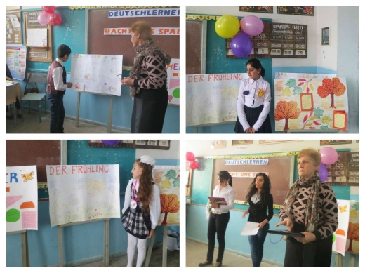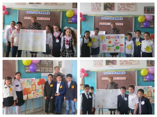 Արարատի մարզի Վերին Արտաշատի միջնակարգ դպրոցում տեղի ունեցավ դաս-մրցույթ՝ դասն ավելի հետաքրքիր, արդյունավետ դարձնելու համար: Դասի ուսումնական նպատակին զուգահեռ գնում էր դաստիարակչական նպատակը՝ թիմային աշխատանքների կարողությունների, հմտությունների ձևավորում, ընկերասիրության, փոխօգնության դաստիարակություն: Դասարանը բաժանված էր 4 թիմերի՝ “Der Herbst”, “Der Winter”, “Der Sommer”, “Der Frühling”: Ընտրված էին թիմերի ավագներ, յուրաքանչյուր թիմ ստացել էր տնային աշխատանք՝ յուրովի ներկայացնել իրենց տարվա եղանակը: Տրվեցին բազմաթիվ առաջադրանքներ՝ բառակազմություն, նախադասության կազմություն, բանաստեղծության վերականգնում, քերականական վարժություններ և նկարներով առաջադրանք: Դաս-մրցույթի նշանաբանն էր՝ “Deutschlernen macht und Spaß”: Դաս-մրցույթը բացեցին XIբ դասարանից Լիլի Հովհաննիսյանը և VIIIբ դասարանից Մարիաննա Ավետիսյանը: Դասից առաջ ընտրված էր մասնագիտական ժյուրի՝ Լ. Մարտիրոսյան (փոխտնօրեն), Մ. Սարգսյան (փոխտնօրեն, գերմաներենի ուսուցչուհի) և Մ. Պետրոսյան (գերմաներենի ուսուցչուհի): Շատ չնչին միավորների տարբերությամբ հաղթող ճանաչվեց “Der Sommer” թիմը, որի ավագն էր Ա. Հախնազարյանը: