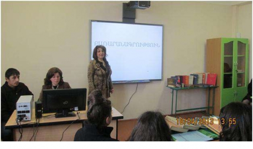 Ապահովված էր միջառարկայական կապը. հնչեց Սայաթ-Նովայի երգը, ասմունք, հետաքրքիր նյութեր համաշխարհային մաշտաբով: Ներկայացվեց բառարանից օտվելու ձևը: Դասն ավարտվեց բառերի հերթականությամբ աշակերտների շարվելով, և վերահանվեց յուրաքանչյուր բառի հետևում թաքնված վանկը, որով ստացվեց «Բառարանները» բառը: