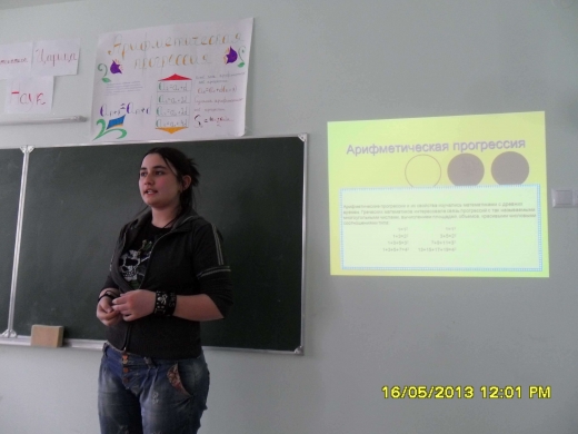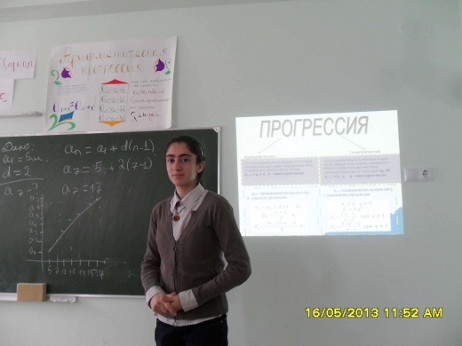Գյումրու թիվ 23 դպրոցի IX-ա դասարանի աշակերտները հանրահաշվի ուսուցչուհի Ն. Սարգսյանի ղեկավարությամբ ներկայացրեցին շատ հետաքրքիր դաս, որի թեման էր «Հանրահաշվական և երկրաչափական պրոգրեսիա»-ն: