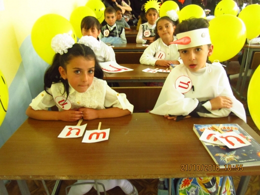 «Ա» տառի ուսուցումը դպրոցներում արդեն ավանդական տոնի է վերածվել: Ե՛վ ուսուցիչները, և՛ աշակերտները պատրաստվում են այդ օրվան, զինվում համբերությամբ, լցվում գիտության լույսով, սպասում հույսով ու ակնկալիքներով: Չ՞է որ այդ օրը հիմք, Մեսրոպյան ոգով ու սրբությամբ օծտված հիմք է դրվելու. աշակերտները սկսելու են ճանաչել ու սերտել հայոց այբուբենը, մեզ դարեր հայ պահող, մեզ դարեր մեր հողին կապող, մեզ պահպանող ու պաշտպանող, քաջարի ու անպարտ 39 զինվոր-տառերի հանգրվան այբուբենը: Այսօր դպրոցում տեղի ունեցավ Ա տառի շնորհանդես. Դասվար Ն.Նիկոյանը երեխաներ ին ներկայացրեց զարմանահրաշ այբուբենի առաջին տառը....Դաս- միջոցառման նպատակն էր՝ ուսուցանել Ա տառը, ամրապնդել պատմություն, նախադասություն, բառ, վանկ, հնչյուն հասկացությունները:Հայոց այբուբենն ուսանող փոքրիկները ոչ միայն բառեր կազմեցին, այլև ներկայացրին փոքրիկ պատմություն արջի, աղվեսի և արջամուկի մասին ... «Ա» տառը կարծես մեկն էր այն փոքրիկներից ում տարեդարձն էր այսօր:Երեխաները Մաշտոցի նկարի առջև երդում տվեցին ջերմորեն սիրել հայկական գիրը:Դասի վերջում երեխաները ստացան «Այբբենարանի բանալին>> հայոց լեզի տետրեր... Շնորհանդեսն եզրափակվեց Այբբենարանի ուղերձ-մաղթանքով, որն ուղղեց դպրոցի տնօրեն Ա. Սահակյանը- «Բարի մուտք դեպի տառերի խորհրդավոր աշխարհ>>: