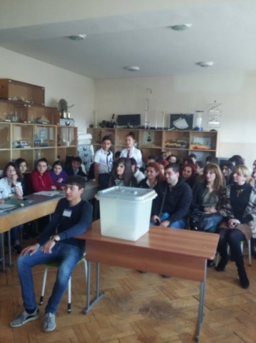 Եվրոպայի խորհրդի քաղաքական դասընթացների երևանյան դպրոցն իրականացնում է «Առաջին անգամ ընտրող» իրազեկման ծրագիրը նաև մեր դպրոցում: Այս ծրագրի շրջանակներում մեր դպրոցի 10-12-րդ դասարաններում կազմակերպվել էր համայնքի ղեկավարի ընտրություն: Դպրոցում ծրագիրը համակարգող ուսուցիչներ Ա. Գևորգյանը, Գ. Այվազյանը կարողացել էին իրականացնել նախապատրաստական աշխատանքները. լրատվության ներկայացուցիչներ, թեկնածուներ, վստահված անձինք, ընտրական հանձնաժողով: 4 թեկնածուներն էլ ներկայացրին իրենց ծրագրերը` բացատրելով դրանց իրականացման ուղիները: Սուր բանավեճի, «մամլո ասուլիսի» ժամանակ բացահայտվեցին քարոզարշավի ընթացքում իրականացրած դիտարկումների արդյունքները, դրական ու բացասական փաստերը: Ընտրական բուն գործընթացն անցկացվեց ամենայն լրջությամբ, պատասխանատվությամբ: Համայնքի ղեկավար ընտրվեց 10ա-րդ դասարանի կողմից առաջադրված թեկնածու Նվեր Վարդանյանը, որն իր «Միասին մենք ուժեղ ենք» կարգախոսով, ծրագրերի իրատեսությամբ վաստակել էր ձայների գերակշռող մասը, նաև՝ ընտրողների համակրանքն ու վստահությունը: Ընտրությունը կայացավ. ուսանելի, մեծ ոգևորություն առաջացնող ծրագիր է, որը կունենա իր շարունակությունը:
