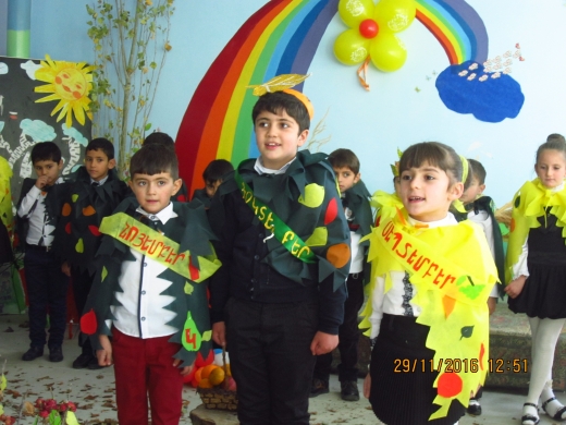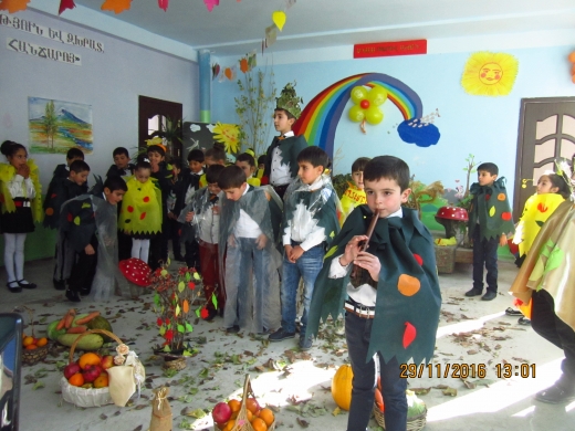 Աշունն իր ողջ հմայքով՝ վառ գույներով, բերք ու բարիքով, աշնան արևով ու երեխաների ուրախ տրամադրությամբ այսօր հանգրվանել էր Վարդենիսի N4 հիմնական դպրոցի փոքր դահլիճում: 2016թվական նոյեմբերի 29-ին դպրոցում տիրում էր աշնանային մթնոլորտ.2-րդ դասարանի աշակերտներն իրենց դասվարներ` Անյուտա Ներսեսյանի և Իռենա Գրիգորյանի հետ միասին կազմակերպել էին գեղեցիկ միջոցառում նվիրված աշնանը. <<Մնաս բարով աշուն>>վերնագրով: Փոքրիկները ներս մտան անձրևի մելամաղձոտ հնչյունների ներքո... Նրանք երաժշտական գողտրիկ բեմադրություն ներկայացրին աշնանային ոսկեհեր անտառի, այգիների հարուստ բերք ու բարիքի մասին: Աշակերտները նկարագրեցին աշնան ամիսները , յուրաքանչյուր ամսում տեղի ունեցող փոփոխությունները: Ինչպես նաև հանդես եկան աշնան վերաբերյալ երգերով, բանաստեղծություններով և պարերով: Այն իր տեսակի մեջ աննախադեպ էր: Բազմաոճ ելույթներով փայլեցին մեր դպրոցի երկու 2-րդ դասարանի սաները: Աշակերտները ներկայացրին աշունն իբրև մեղեդի, երբեմն պայծառ, երբեմն թախծոտ, երբեմն օրորոցային, բայց միշտ լուսավոր, լավատեսությամբ լի: Միջոցառումը հաջողված էր և ուսանելի: Այս միջոցառումը մեծ ոգևորություն առաջացրեց ,թե երեխաների և թե, ծնողների մոտ: