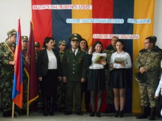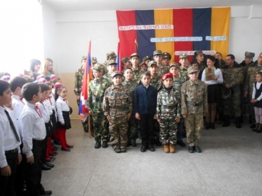 Միջոցառում Ստեփանավանի N 1 հիմնական դպրոցում Ուղիղ 25 տարի առաջ կազմավորվեց ու ծնունդ առավ հայոց ազգային բանակը՝ նպաստելով հայոց պետականության ամրապնդման փուլին: Հայոց բանակը ծնունդ առավ Արցախյան պատերազմի սկզբներին, երբ մենք պատերազմ էին վարում Արցախի փրկության ու ազատագրման համար զինվորագրված հազարավոր կամավորականների ուժերով ու կյանքի գնով: Պատերազմին առաջին իսկ օրերից սկսած իրենց մասնակցությունն ունեցան մեր մի շարք համաքաղաքացիներ, այդ թվում նաև մեր դպրոցի նախկին սաներ Հովիկ Քալաշյանը, մականունը՝ Ուզբեկ, Գարիկ Մաթևոսյանը, մականունը՝ Շվարց և Աշոտ Գյուլզադյանը, որոնց հերոսաբար զոհվեցին մարտի դաշտում՝ իրենց արյամբ ներկելով ու ազատագրելով մեր հայրենի հողը: Եկեք փառք ու պատիվ տանք մեր բանակի բոլոր այն մարտիկներին, կամավորականներին, ովքեր մասնակցել կամ աջակցել են Արցախյան ազատամարտին և հարգենք նրանց հավերժ հիշատակն ու գլուխ խոնարհենք նրանց համար, ովքեր իրենց կյանքն են զոհաբերել մեր հաղթանակի նվաճման ու խաղաղության հաստատման համար: Մեր բազմադարյա ու բազմաչարչար ժողովրդի պատմության մեջ 25 տարին ընդամենը մի ակնթարթ է, սակայն մեր բանակի համար շատ կարևոր ու նշանավոր իրադարձություններով հարուստ մի շրջան է այն: Հայոց բանակի կազմավորման առաջին օրերից ի վեր հայոց պատմության ու պետականության համար նշանավորվեց որպես մի նոր փուլ, երբ հայ ժողովուրդը՝ հանձին հայոց բանակի մարտի դաշտում սկսեց ունենալ վճռական ու բեկումնային հաջողություններ՝ շարունակելով անընդմեջ լրացնել փառավոր մարտերի հաղթարշավը: Հանձինս մեր ազգային բանակի՝ մենք վերագտանք դարերի թոհուբոհում կորցրած մեր մեծագույն պաշտպանին ու զորեղ ուժին, մեր պետականության ամենահուսալի հովանավորին: Այսօոր արդեն, մենք ունենք կազմավորված, կանոնավոր և կայացած ազգային բանակ, որն իհարկե լիովին տարբերվում է 25 տարի առաջ մեր ունեցած նորաստեղծ բանակից: Մենք պետք է ընդմիշտ հպարտանանք հայոց բանակով և ազգովին պահենք ու սրբերոն պահպանենք այն հզոր բազուկն ու բռնունցքը, որը կոչված է մեր պետության ու ժողովրդի անվտանգությունն ու խաղաղությունը պահպանելու համար: Ուրեմն եկեք միմյանց շնորհավորենք մեր հայոց ազգային բանակի ծննդյան 25-ամյա տոնի առթիվ, և մեր բուռն ծափահարություններով նրան մաղթենք դարավոր հաղթական ու փառավոր երկար ճանապարհ, մեր հայրենի երկրում թող մեր բանակը ընդմիշտ ամուր ու անսասան կանգնած լինի մեր պետության ու ժողովրդի թիկունքին, թող միշտ մնա հաղթական ու իր սուրը միշտ փառքով դնի նա պատյան: