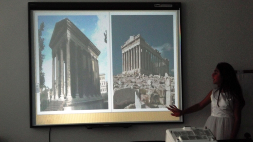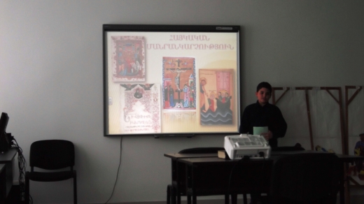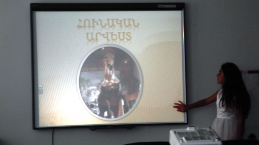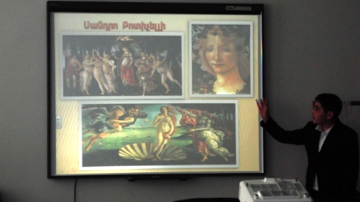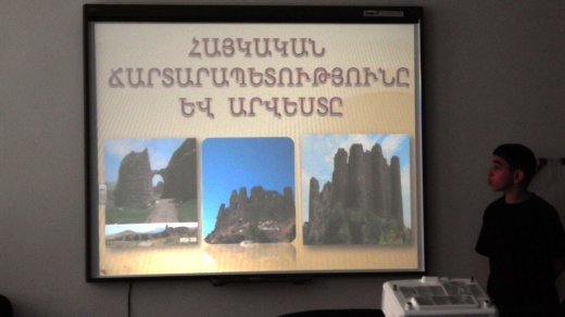 Առաջին մասում ցուցադրվեցին համաշխարհային արվեստի և հայարվեստի մեծագույն նկարիչների, քանդակագործների և ճարտարապետների լավագույն ստեղծագործությունները էլեկտրոնային գրատախտակի վրա: Բոլոր սլայդները ձևավորված էին հետաքրքիր էֆեկտներով և համեմված հաճելի երաժշտությամբ: Աշակերտները մեկ առ մեկ խոսում էին արվեստագետի և իր ժամանակաշրջանի մասին: