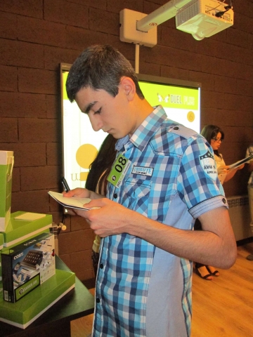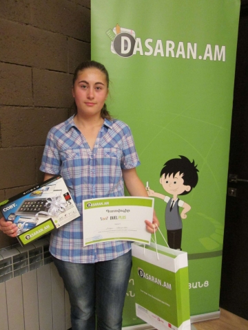 Այսօր` հունիսի 27-ին տեղի ունեցավ «Dasaran.am» կրթական ծրագրի կողմից կազմակերպված «Duel Plus» ինտելեկտուալ օլիմպիադայի` 10-12 դասարանների տարիքային խմբի վիկտորինան, որի հաղթող դարձավ Գյումրու Ֆոտոն վարժարանի 10-տնտ1 դասարանի աշակերտուհի Մանյա Միրզոյանը, ով ստացավ պլանշետ: Վիկտորինային մասնակցող մյուս 9 մասնակիցները պարգևատրվեցին խրախուսական մրցանակներով: