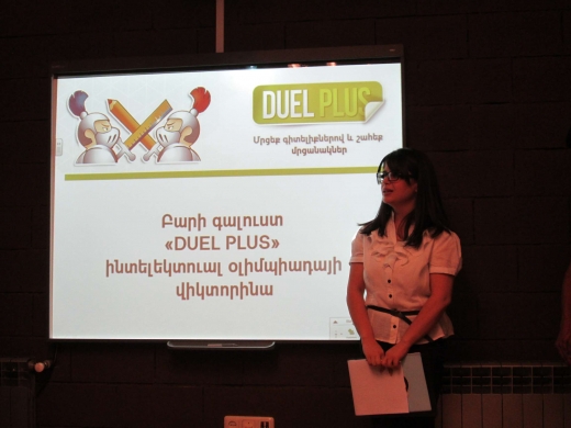 «DUEL Plus» ինտելեկտուալ օլիմպիադան անցկացվում է երկու փուլով և նախատեսված է 4 տարիքային խմբերի համար (2-3-րդ, 4-6-րդ, 7-9-րդ և 10-12-րդ դասարաններ): Մրցույթի ընթացքում մասնակիցները պատասխանել են ընդհանուր զարգացվածության և դպրոցական դասագրքերի հիման վրա ստեղծված հարցաշարերին, իսկ լավագույնները մրցույթի ավարտին պարգևատրվել են բազմաթիվ մրցանակներով և խրախուսական նվերներով: