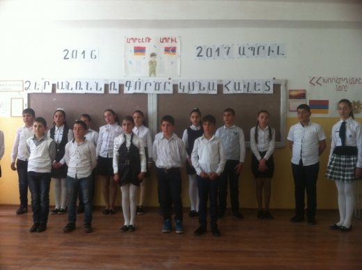 Ապրիլ ամիսը հերոսներ տվեց, Ապրիլ ամիսը մեզ միավորեց , Ապրիլն արցախյան մեզ նոր ուժ տվեց… Ապրիլ ամսվա վերջին շաբաթը Լճաշենի Ա. Տեր-Գրիգորյանի անվան միջնակարգ դպրոցը հագեցած էր տարատեսակ միջոցառումներով . դասղեկի ժամեր, արիության դասեր, գրական-երաժշտական ցերեկույթներ: Ապրիլյան քառօրյա պատերազմին նվիրված շարքի <<Ձեր անունն ու գործը կմնան հավետ>> դաս-ցերեկույթն անցկացվեց 6-րդԲ դասարանում՝ <<Պատմություն>> առարկայի ուսուցչուհի Արմինե Խաչատրյանի նախաձեռնությամբ, որին նախապատրաստվել էր խնամքով ու մեծ նվիրումով; Աշակերտներն իրենց ասմունքով ու հայրենասիրական <<Սահմանին>>, <<Վեր կաց եղբայր>>, <<Ախպերս ու ես>> երգերի կատարումներով ամբողջացրին հայ ժողովրդի պատմությունը և ապագայի նկատմամբ սերն ու հավատը, իրենց գեղեցիկ խոսքով և աչքերում բռնկվող փայլատակումներով ներկաներին համոզեցին, որ իրենք այն հերոսական սերունդն են , որոնց մտքի ու բազկի ուժով կանգուն է մնալու հող հայրենին: Արցախյան պատերազմի հաղթարշավն ապացուցեց ,որ թշնամին չի կարող որևէ ոտնձգություն կատարել ու մնալ անպատիժ : Դաս-ցերեկույթի ավարտին ուսուցիչները բարեմաղթանքներ հղեցին աշակերտներին, իսկ դպրոցի տնօրեն Ա. Մուրադյանը հանդես եկավ ամփոփիչ գնահատման խոսքով: Սովորողների հետ դաստիարակչական աշխատանքների կազմակերպիչ՝ Ծ.Կարապետյան