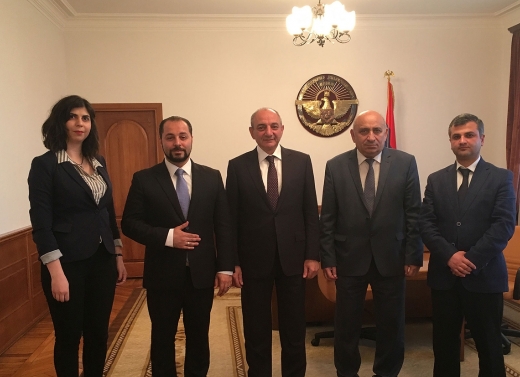 During the second half of the working visit, the President of the Republic of Artsakh Mr. Bako Sahakyan hosted the team of Dasaran headed by the Founding President of Dasaran Educational Program Mr. Suren Aloyan. The meeting was attended also by the Minister of Education, Science and Sports of the Republic of Artsakh, Mr. Slava Asryan, and featured a discussion of a series of issues in the sphere of education.
