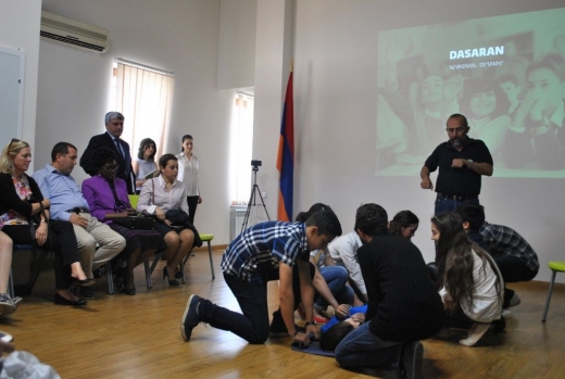 In the frames of its new project on Disaster risk reduction and awareness-raising among school-students today Dasaran Educational Center hosted a special practical training on "Immediate withdrawal and transfer of injured at the time of emergency situations", conducted by the President of "Sparta Survival Center" NGO, Trainer on "Security, safety and survival" and disaster risk reduction expert Spartak Hovhannisyan.