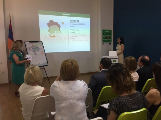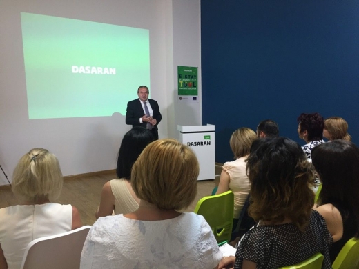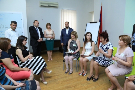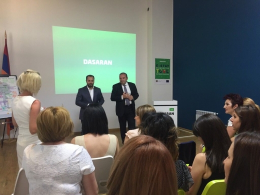 "Train - 12" Teachers' Workshop on Modern Educational Models developed by Dasaran Educational Program has gained the love and trust of public school teachers within a very short time-period. The huge interest towards the workshop was reinstated by the visit of the Republic of Armenia Minister of Education and Science Levon Mkrtchyan during the regular "Train - 12" training session. The Minister got introduced to the workshop course, which gathered around 40 teachers and educators from Yerevan and regions at Dasaran Educational Center today. Expressing gratitude to Dasaran Educational Program for such a beautiful and efficient idea initiation, Minister Levon Mkrtchyan highlighted the importance of such programs, which contribute to the knowledge-to-skills transformation and competence building. "I am proud that people who have succeeded in a variety of other areas, generously invest their potential in the field of education", - stated the Minister relating to Dasaran. The participating teachers also expressed their deep gratitude for the special atmosphere during the workshops, stating that Dasaran guided all of them in the enhancement of their teacher competences. And the Founding President of Dasaran Educational Program Suren Aloyan, sharing his gratefulness to Minister Levon Mkrtchyan and thanking teachers for their kind words, noted that the Educational Program, loyal to its mission and ideology, is going to stay next to the school and the teacher. At the end of the event teachers participating in the workshop received "New Generation Teacher" symbolic badges from the RA Minister of Education and Science.