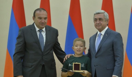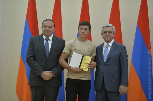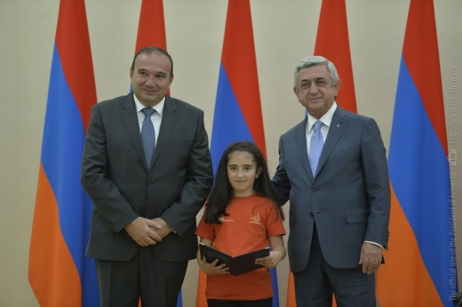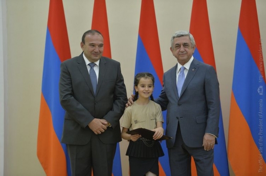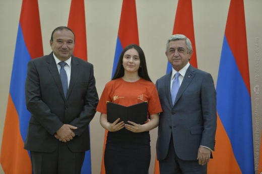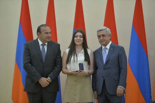 Նախագահ Սերժ Սարգսյանը հյուրընկալել է 2016-2017 ուսումնական տարում բարձր առաջադիմություն ցուցաբերած հանրապետության հանրակրթական ուսումնական հաստատությունների մեդալակիր շրջանավարտներին, ինչպես նաև դպրոցականների միջազգային առարկայական օլիմպիադաներում 2017թ. հաջողությունների հասած մայրաքաղաքի և մարզերի աշակերտներին, «Կենգուրու» միջազգային մաթեմատիկական և հայոց լեզվի «Մեղու» մրցույթների մրցանակակիրներին: Նախագահը ողջույնել է ներկաներին՝ շնորհավորելով բարձր առաջադիմություն ցուցաբերած, ինչպես նաև միջազգային օլիմպիադաներում հաղթած դպրոցականներին և երիտասարդներին: «Բարեկեցության հիմքը գիտելիքն է: Մրցունակության հիմքը գիտելիքն է: Այս առումով Հայաստանի Հանրապետությունը մշտապես պատրաստ է կանգնելու ձեզնից յուրաքանչյուրի կողքին: Ես ցանկանում եմ, որպեսզի դպրոցն ավարտելուց հետո, ոմանք նաև բարձրագույն ուսումնական հաստատությունն ավարտելուց կամ նույնիսկ կես ճանապարհին ընդունվեն լավագույն այլ բուհեր: Ավարտելով մեր կամ այլ երկրների բուհեր՝ կցանկանայի, որ ձեզնից շատերը զբաղվեին գիտությամբ, որովհետև, ինչպես ասացի, գիտության ու ուսման նկատմամբ սերն ու ունակություններն են մեր ժողովրդին հասցրել մինչև 21-րդ դար: Ուրեմն, դուք պետք է արժանի շարունակողները լինեք մեր միջնադարյան և նորագույն ժամանակների լավագույն անհատների, նրանց ջանքերի: Մենք մշտապես պատրաստ ենք ձեզ օժանդակելու, ձեզ սատարելու: Իհարկե, շնորհակալ եմ ձեր ծնողներին, ովքեր կարողացել են մի կողմից լավ առումով այդ վարակը տարածել ձեր մեջ, մյուս կողմից մշտապես փորձել են պայմաններ ստեղծել, որպեսզի դուք կարողանաք և՛ լավ սովորել, և՛ հասնել արդյունքների: Բայց իմացեք՝ գլխավոր հերոսը դուք եք, պատմություն կերտողը դուք եք: Ձեր ծնողներն ու ուսուցիչները ձեզ օժանդակում են սիրով, օժանդակում են մեծավարի, օժանդակում են ավելին իմացողի դիրքերից, բայց եթե ձեր ցանկությունն ու աշխատասիրությունը չլինի, դժվար թե դուք կարողանաք հասնել լուրջ հաջողությունների»,-իր խոսքում նշել է Նախագահը: Նախագահը պատասխանել է հանդիպման մասնակիցներին հետաքրքրող հարցերին, այնուհետև կրթության և գիտության նախարարի hետ միասին ոսկե մեդալներ, գովասանագրեր և խրախուսական նվերներ է հանձնել միջազգային օլիմպիադաների մրցանակակիրներին, շրջանավարտներին ու աշակերտներին: Աղբյուրը՝ Panorama.am
