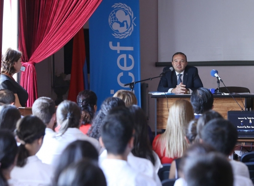 Աշխարհի մի շարք երկրներում այսօր նշվում է «Աշխարհի մեծ դասը»՝ նվիրված ՄԱԿ-ի «Կայուն զարգացում 2030» օրակարգում ներառված նպատակներին: Օրվա առթիվ Երևանի Հերացու անվան դպրոցում կազմակերպված միջոցառմանը ներկա են եղել ԿԳ նախարար Լևոն Մկրտչյանը, Երևանի պետական բժշկական համալսարանի ռեկտոր Արմեն Մուրադյանն ու ՄԱԿ-ի հայաստանյան գրասենյակի ներկայացուցիչներ: ԿԳ նախարարն անդրադարձել է «Աշխարհի մեծ դասի» ընդհանուր գաղափարին՝ նշելով, որ տեխնոլոգիական առաջընթացը հնարավորություն է տվել զգալ աշխարհի ցանկացած անկյունում տեղի ունեցող ցանկացած իրադարձություն կյանքի, կենցաղի ու մտածողության վրա: «Մենք մեկ միավորի լիարժեք անդամ ենք արդեն ավելի քան 25 տարի, քանի որ մեր երկիրը կարողացավ այս տարիների ընթացքում ձևավորել իր անկախությունը: Դուք՝ աշակերտներդ, անկախության հերթական սերունդն եք, որովհետև ծնվել եք անկախ Հայաստանում և կրելու եք անկախ պետության քաղաքացիական պարտավորություններ: Սա նշանակում է՝ մենք պետք է հասկանանք և գնահատենք՝ ինչի՞ տեր ենք այսօր և ինչո՞վ ենք ներկայանալու աշխարհին: Մեզ համար այս բանաձևը դեռևս 5-րդ դարում տվել է մեծ պատմահայր Խորենացին՝ ասելով՝ թեև մենք փոքր ազգ ենք, բայց մեր երկրում էլ, մեր ժողովրդի հետ էլ կատարվում են իրադարձություններ, որոնք արժանի են հիշատակման: Այսինքն՝ աշխարհում ժողովուրդները հիշվում և հիշատակվում են իրենց անցյալով, ներկայով և ապագային ուղղված նպատակադրումներով: Մենք այն ժողովուրդներից ենք, որոնք միշտ կարողացել են իրենց ձեռագիրն ունենալ աշխարհի մեծ գրադարանում: Ավելի քան 7000 տարվա պատմությամբ իրավունք ունենք այս աշխարհում ունենալ մեր տեսակին համարժեք, միայն մեզ հատուկ փոքրիկ գրադարակը»,-նշել է ԿԳ նախարարը և հավելել, որ ՄԱԿ-ը մինչև 2030թ. աշխարհի զարգացման համար տվել է 17 առաջնահերթություններ, որոնց իրագործմամբ մարդկությունն ավելի բարձր որակի կհասնի: ԿԳ նախարարը նշել է նաև, որ մենք այն ժողովուրդներից ենք, որոնք միշտ կարողացել են իրենց ձեռագիրն ունենալ աշխարհի մեծ գրադարակում, և մեր՝ ավելի քան 7000 տարվա պատմությամբ իրավունք ունենք այս աշխարհում ունենալու մեր տեսակին համարժեք, միայն մեզ հատուկ մեր փոքրիկ գրադարակը, որը պետք է լինի էությամբ համամարդկային, ինչպիսին միշտ եղել է, իսկ բովանդակությամբ՝ մերը. այսպես է նաև աշխարհը հարստանում: «Տարածաշրջանում մեկ ուրիշ ֆունկցիա էլ ունենք՝ մեր ժողովուրդը շատ է տեսել անարդարություն ու խաղաղության պակասից շատ է տուժել, ուրեմն՝ խաղաղության և արդարության հասնելու ամենաուղիղ ճանապարհը մեր ուժեղացումն է: Պետք է կարողանանք ամեն ինչ անել, որ Հայաստանը շարունակի մնալ կրթության և գիտության երկիր: Բացի այդ՝ պետք է կարողանանք մեր հասարակարգը պահել ու քարի վրա քար ավելացնել»,- նշել է Լ. Մկրտչյանը: «Թվում է՝ մարդկությունն ավելի շատ խնդիրներ է ստեղծում, քան դրանց լուծում առաջարկում: Բոլորս էլ գիտենք, որ աշխարհը բարելավման կարիք ունի, սակայն պետք է հասկանանք՝ ի՞նչը պետք է բարելավվի ու ի՞նչ միջոցներով: Ուզում եմ բոլորս հասկանանք՝ աշխարհը չի կարող լավը դառնալ մի քանիսի միջոցով, մեզնից յուրաքանչյուրը պետք է իր ներդրումն ունենալ դրանում»,- նշել է ՄԱԿ-ի մանկական հիմնադրամի հայաստանյան ներկայացուցիչ Տանյա Ռադոչայը: «Միջազգային մակարդակի կրթություն. սա է ձեր ապագայի երաշխիքը՝ մեր պետականության, մեր սահմանի անսասան լինելու: Յուրաքանչյուր ժողովուրդ իր քաղաքակրթության կիզակետն է համարում պետականության ստեղծումն ու դրա պահպանումը»,- նշել է ԵՊԲՀ ռեկտոր Արմեն Մուրադյանը՝ ընդգծելով, որ Հայաստանում այժմ բոլոր կրթական հաստատությունները միջազգայնացման ուղի են բռնել: Աշակերտները հարցեր