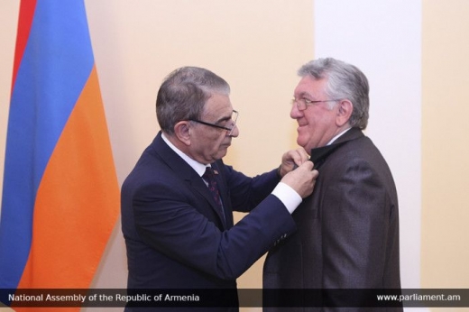 Սպորտի և հասարակական գործունեության բնագավառներում ունեցած նշանակալի ավանդի համար ԱԺ պատվո մեդալով են պարգևատրվել Արկադի Անդրեասյանը, Ալյոշա Աբրահամյանը, Սերգեյ Պողոսյանը, Նորայր Մեսրոպյանը, Սուրեն Մարտիրոսյանը, Նիկոլայ Ղազարյանը, Էդուարդ Մարկարովը, ԱԺ նախագահի հուշամեդալով՝ Ռուդիկ Բարսեղյանը: Պարգևները հանձնելով «Արարատ-73» ֆուտբոլային թիմի անդամներին՝ ԱԺ նախագահ Արա Բաբլոյանը նշել է, որ այդ լուրջ պայքարում հայ ֆուտբոլիստները հաղթող են դուրս եկել՝ կարողանալով մեր ժողովրդին պարգևել կրկնակի հաղթանակի բերկրանք ու հպարտության պահեր: «Այն, ինչ 1973 թվականին իրագործեցիք դուք և Երևանի «Արարատ» ֆուտբոլային ակումբի ձեր խաղընկերները, իսկապես հերոսություն էր՝ հաշվի առնելով, թե ինչպիսի մրցակցության պայմաններում կարողացաք նվաճել Խորհրդային Միության չեմպիոնի կոչումը և ԽՍՀՄ գավաթը: Հավատացեք, այսօր՝ 45 տարի անց էլ մենք ոչ պակաս հպարտություն ենք ապրում: Դուք հայ ժողովրդի համար լեգենդար անձնավորություններ եք »,-նշել է ԱԺ նախագահը: ՀՀ ԱԺ նախագահի տեղակալ Էդուարդ Շարմազանովը ևս շնորհավորել է արարատցիներին՝ ընդգծելով, որ այս տարին հոբելյանական է մեր ժողովրդի համար. պետք է նշվի Հայաստանի առաջին հանրապետության հռչակման 100-ամյա հոբելյանը, արցախյան շարժման 30-ամյակը, ինչպես նաև «Արարատ 73»-ի կրկնակի հաղթանակի 45-ամյակը: Վերհիշելով 20-րդ դարում հայ ժողովրդի ազգային զարթոնքի հաղթական էջերը՝ Էդուարդ Շարմազանովն ընդգծել է, որ դրանց շարքում իրենց ուրույն տեղն ունեն նաև մարզական նվաճումները: «Դուք կաք ու կլինեք ոչ միայն մեր մարզական աշխարհի, այլ նաև հասարակական կյանքի ամենավառ աստղերից»,-նշել է ՀՀ ԱԺ նախագահի տեղակալը: Աղբյուրը՝ Panorama.am
