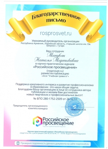 ՆՈՐ ՊԱՐԳԵՎՆԵՐ ԳՈՒԳԱՐՔԻ Հ.ՇԻՐԱԶԻ ԱՆՎԱՆ ԱՎԱԳ ԴՊՐՈՑՈՒՄ