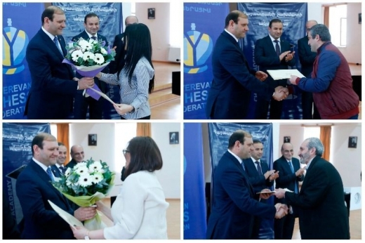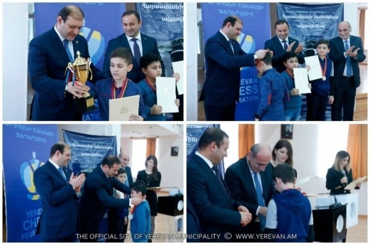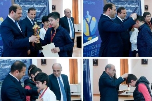 Ավարտվել է Երևանի 2018 թ.-ի շախմատի պատանեկան առաջնությունը: Այս տարի յոթ տարիքային խմբերով անցկացվող մրցաշարին մասնակցել են 476 պատանիներ և աղջիկներ՝ նախորդ տարվա 229 մասնակցի փոխարեն: Առաջնության արդյունքներով յուրաքանչյուր տարիքային խմբից համապատասխան թվով մասնակիցներ իրավունք են ստացել մասնակցելու Հայաստանի պատանիների և աղջիկների 2018 թ. առաջնության կիսաեզրափակիչ մրցաշարին: Շախմատի 2018թ. Երևանի պատանեկան առաջնության մրցանակակիրներին գավաթներն ու մեդալները հանձնել է քաղաքապետ Տարոն Մարգարյանը: Մրցանակային տեղեր են զբաղեցրել՝ մինչև 8 տարեկան պատանիների մրցաշար 1-ին տեղ՝ Նարեկ Մկրտչյան 2-րդ տեղ՝ Հայկ Մախսուդյան 3-րդ տեղ՝ Արմեն Բոտոյան մինչև 8 տարեկան աղջիկների մրցաշար 1-ին տեղ՝ Սոնա Կրկյաշարյան 2-րդ տեղ՝ Նելլի Գրիգորյան 3-րդ տեղ՝ Անահիտ Գևորգյան մինչև 10 տարեկան պատանիների մրցաշար 1-ին տեղ՝ Բենիկ Ագասարով 2-րդ տեղ՝ Մենուա Հակոբյան 3-րդ տեղ՝ Ռուդոլֆ Փաշիկյան մինչև 10 տարեկան աղջիկների մրցաշար 1-ին տեղ՝ Անժելա Կարապետյան 2-րդ տեղ՝ Անահիտ Մկրտչյան 3-րդ տեղ՝ Էլեն Միրզոյան մինչև 12 տարեկան պատանիների մրցաշար 1-ին տեղ՝ Սարմեն Պողոսյան 2-րդ տեղ՝ Գրիշա Ստեփանյան 3-րդ տեղ՝ Միքայել Ռոստոմյան մինչև 12 տարեկան աղջիկների մրցաշար 1-ին տեղ՝ Ալվարդ Ստեփանյան 2-րդ տեղ՝ Նարե Խալաֆյան 3-րդ տեղ՝ Սեդա Բադալյան մինչև 14 տարեկան պատանիների մրցաշար 1-ին տեղ՝ Արամ Գրիգորյան 2-րդ տեղ՝ Գոռ Փիլիպոսյան 3-րդ տեղ՝ Նարեկ Մանասերյան մինչև 16 տարեկան պատանիների մրցաշար 1-ին տեղ՝ Նարեկ Գևորգյան 2-րդ տեղ՝ Արթուր Խուբլարյան 3-րդ տեղ՝ Էդուարդ Իսրայելյան Մրցաշարի փակման հանդիսավոր արարողությանը ներկա են գտնվել Երևանի քաղաքապետ, Երևանի շախմատի ֆեդերացիայի նախագահ Տարոն Մարգարյանը և Հայաստանի շախմատի ֆեդերացիայի նախագահի առաջին տեղակալ Սմբատ Լպուտյանը: Առաջնության կազմակերպմանը մեծապես օժանդակելու, ինչպես նաև ամենաշատ թվով մասնակիցներ ու սաներ հայտավորելու համար էլ Հայաստանի շախմատի ակադեմիան, Հենրիկ Գասպարյանի անվան շախմատի օլիմպիական մարզադպրոցն ու մի շարք անձինք պարգևատրվել են Երևանի շախմատի ֆեդերացիայի պատվոգրերով ու շնորհակալագրերով: Աղբյուրը՝ Chessfed.am